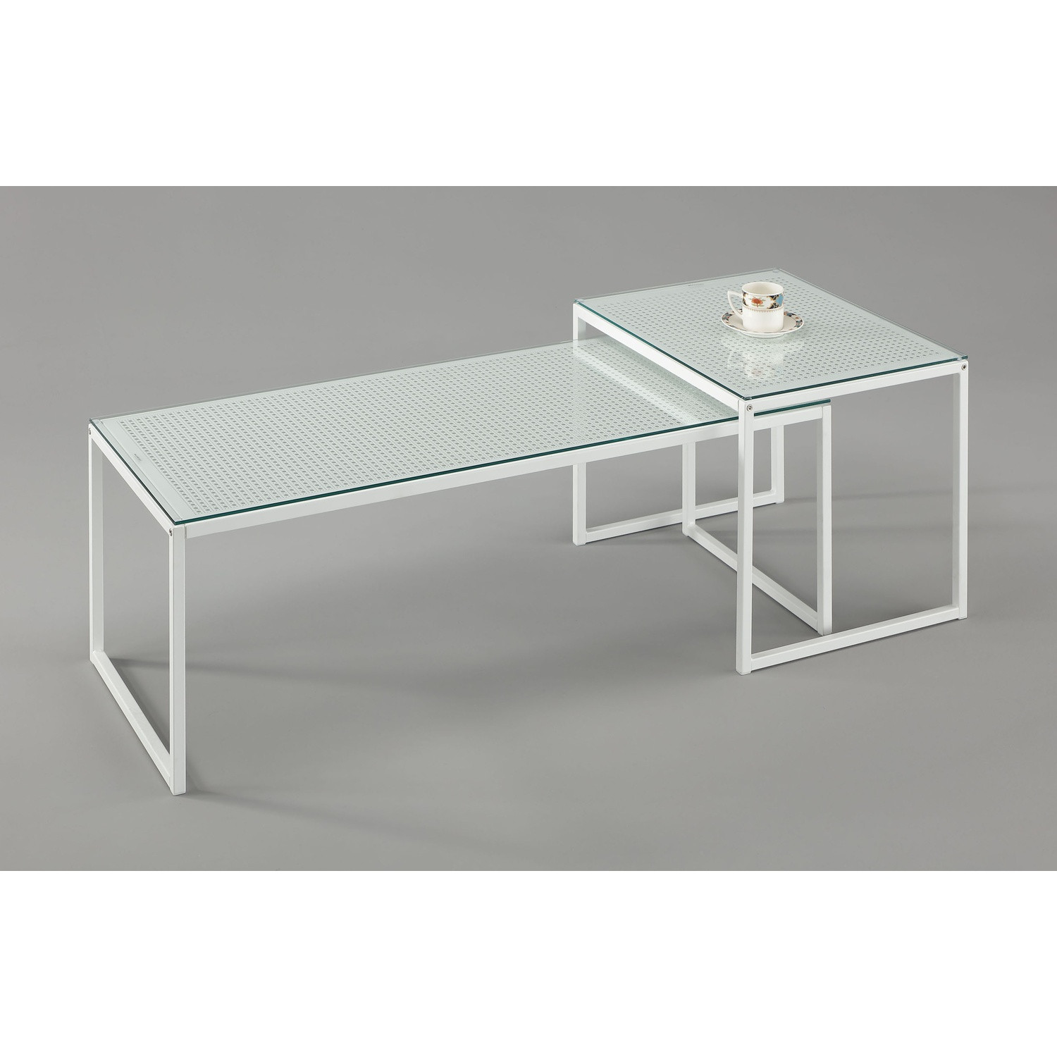 GLANES NEST OF 2 COFFEE TABLE SET MATT WHITE (#) MATT WHITE